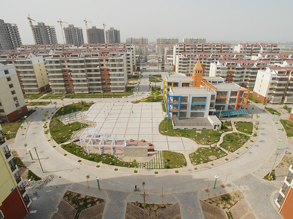 小区于2004年5月开工建设,,,,2005年8月一期工程完工交付使用,,,,施工质量优良。。。。小区妄想用地25.4公顷, 住宅楼46栋,住房1825套, 住宅总修建面积21万平方米。。。。小区楼宇装置电梯的有21栋楼,,,,共计43部电梯,,,,绿化面积7.5万平方米,绿化笼罩率达35%,工程质量及格率达100%,优良率达70%。。。。